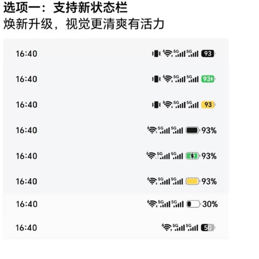 Технические изменения включают внедрение динамической цветовой палитры для ключевых элементов интерфейса. В частности, индикатор заряда аккумулятора меняет цвет в зависимости от режима работы устройства: при подключении к источнику питания он становится насыщенно-зеленым, а при переходе в режим экономии энергии — желтым. Также разработчики полностью обновили шрифты для обозначения стандартов связи 5G и Wi-Fi 6, а также числовых показателей уровня заряда.